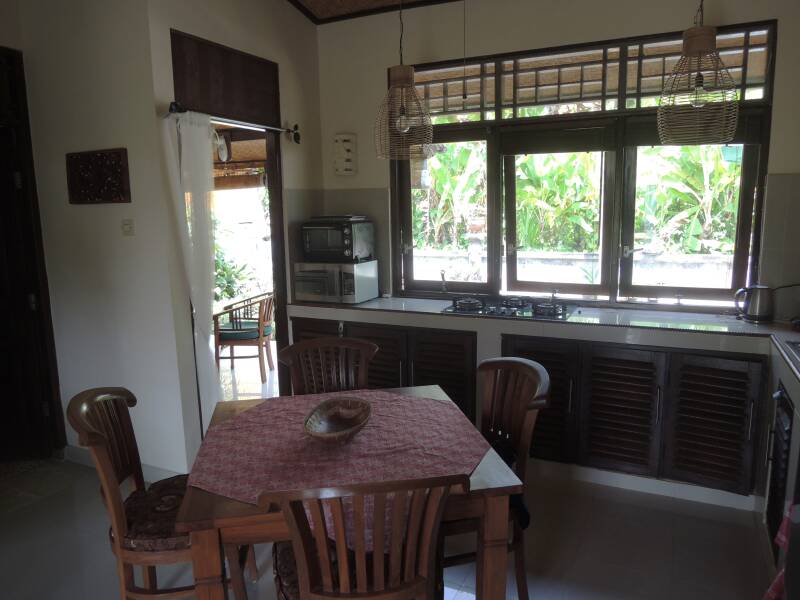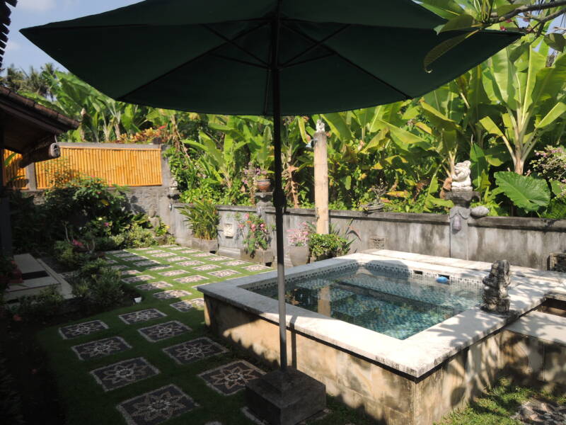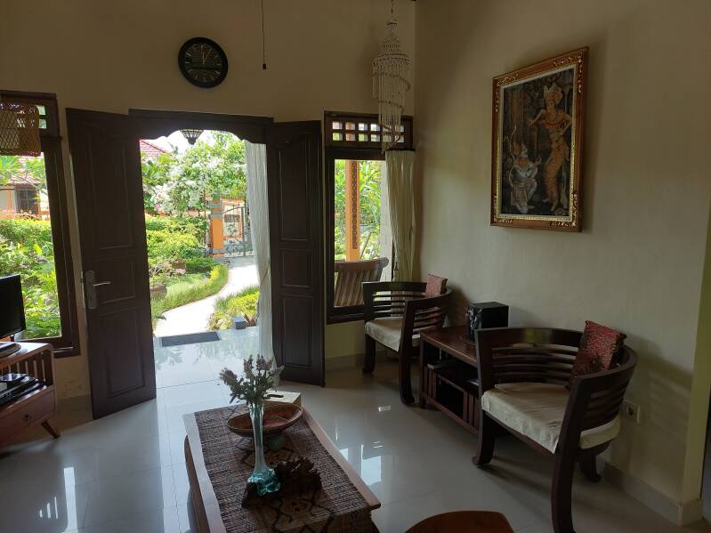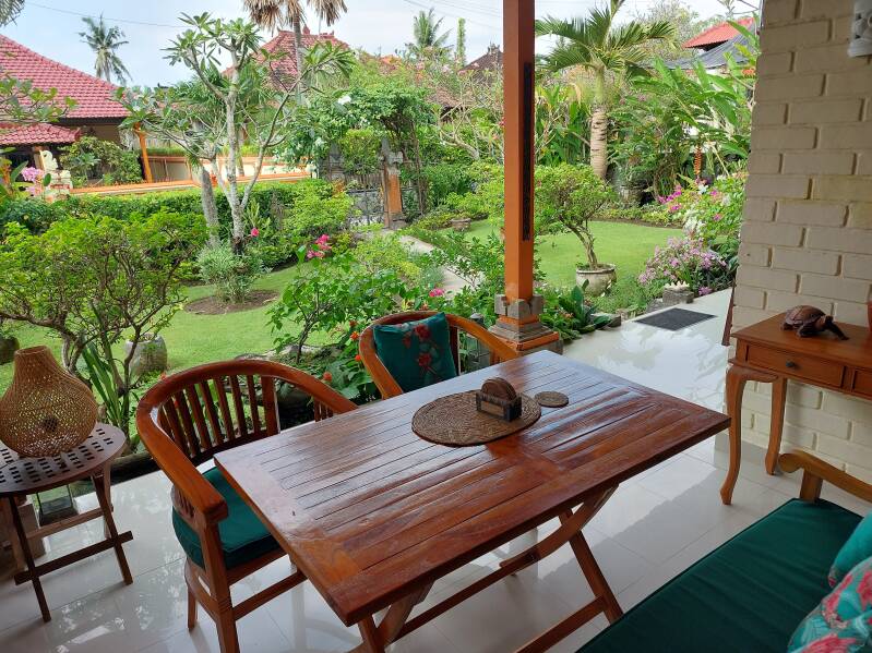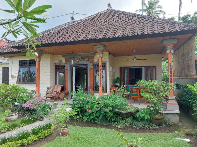 De heerlijke bungalow is recent volledig gerenoveerd en ligt tussen de rijstvelden en de zee. Het staat in een rustig dorp Jasri waar u nog het echte Balinese leven dagelijks kunt beleven. Op enkele minuten lopen naar de zee vinden op het strand regelmatig diverse cremonies en rituelen plaats en crematies.